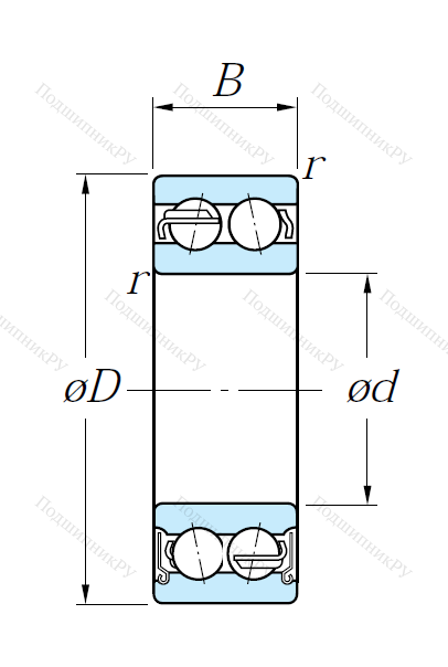 Двухрядный шариковый подшипник 5207 ZZ