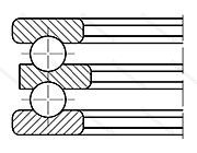 Подшипник упорный шариковый двойной 38210 в конструкцию которого входит свободная внешняя и тугая внутренняя шины (последняя жестко фиксируется на валу), сепаратор и заключенные в нем тела качения. При наличии двух рядов шарикоподшипников изделие комплектуется парой сепараторов. Может иметь подкладную обойму.