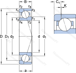 | Номинальная динамическая грузоподъёмность | C | 30.2 | kN | |